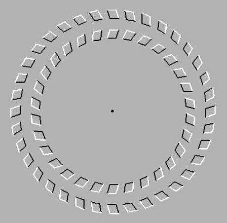 Schaut man auf den schwarzen Punkt in der Mitte und
