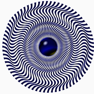 Schaut man auf die Mitte des Magischen Auges und bewegt den Kopft ein wenig vor und zurück, gibt es einen Dreheffekt